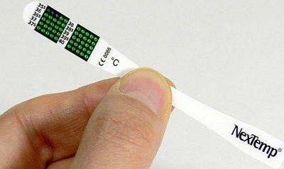 NexTemp - это тонкая пластиковая полоска с прикрепленными жидкими кристаллами.
