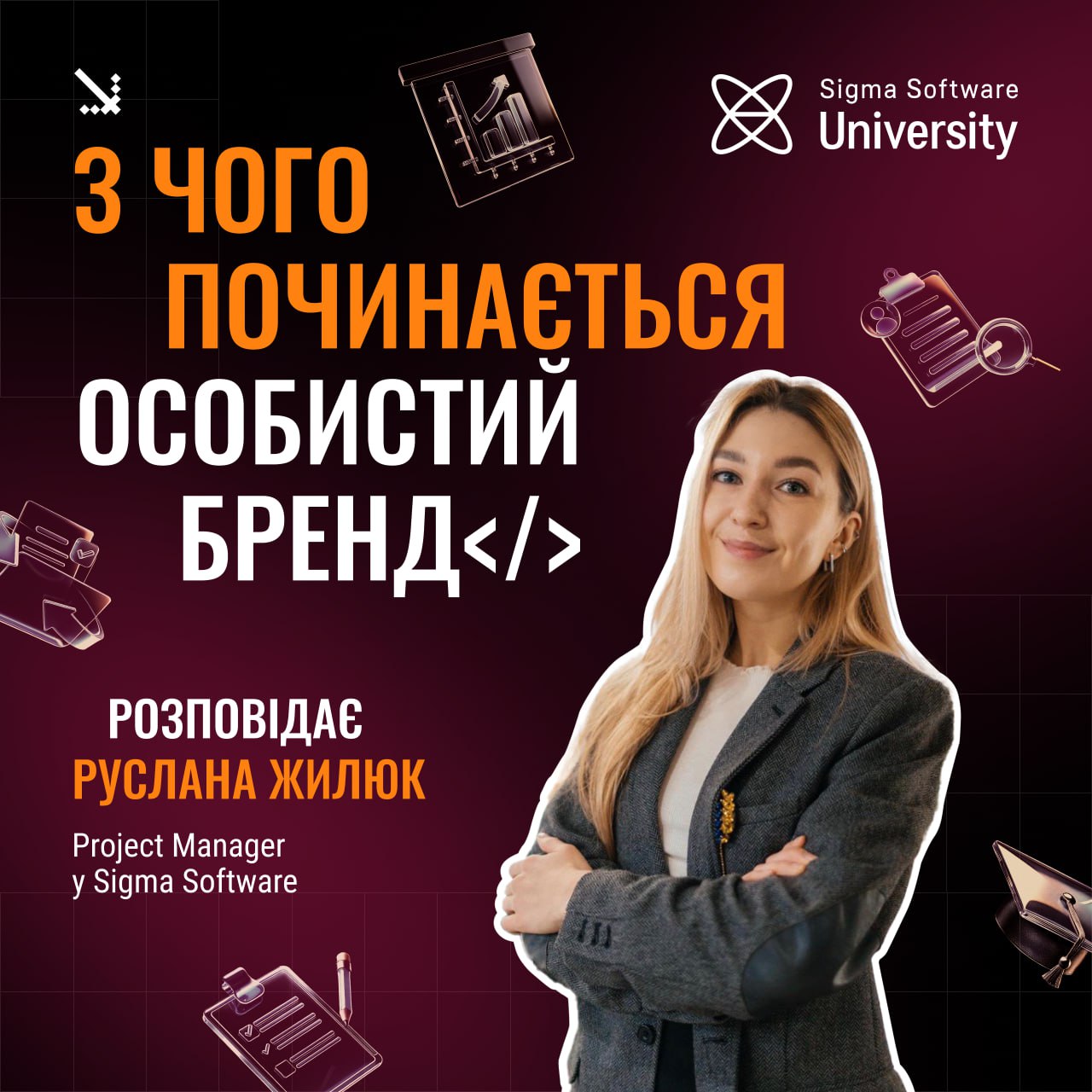 Своїм досвідом ділиться Руслана Жилюк, Project Manager у Sigma Software, яка вже не перший рік вивчає тему особистого бренду. І робить це не з позиції трендів, а щирого пізнання себе 😌