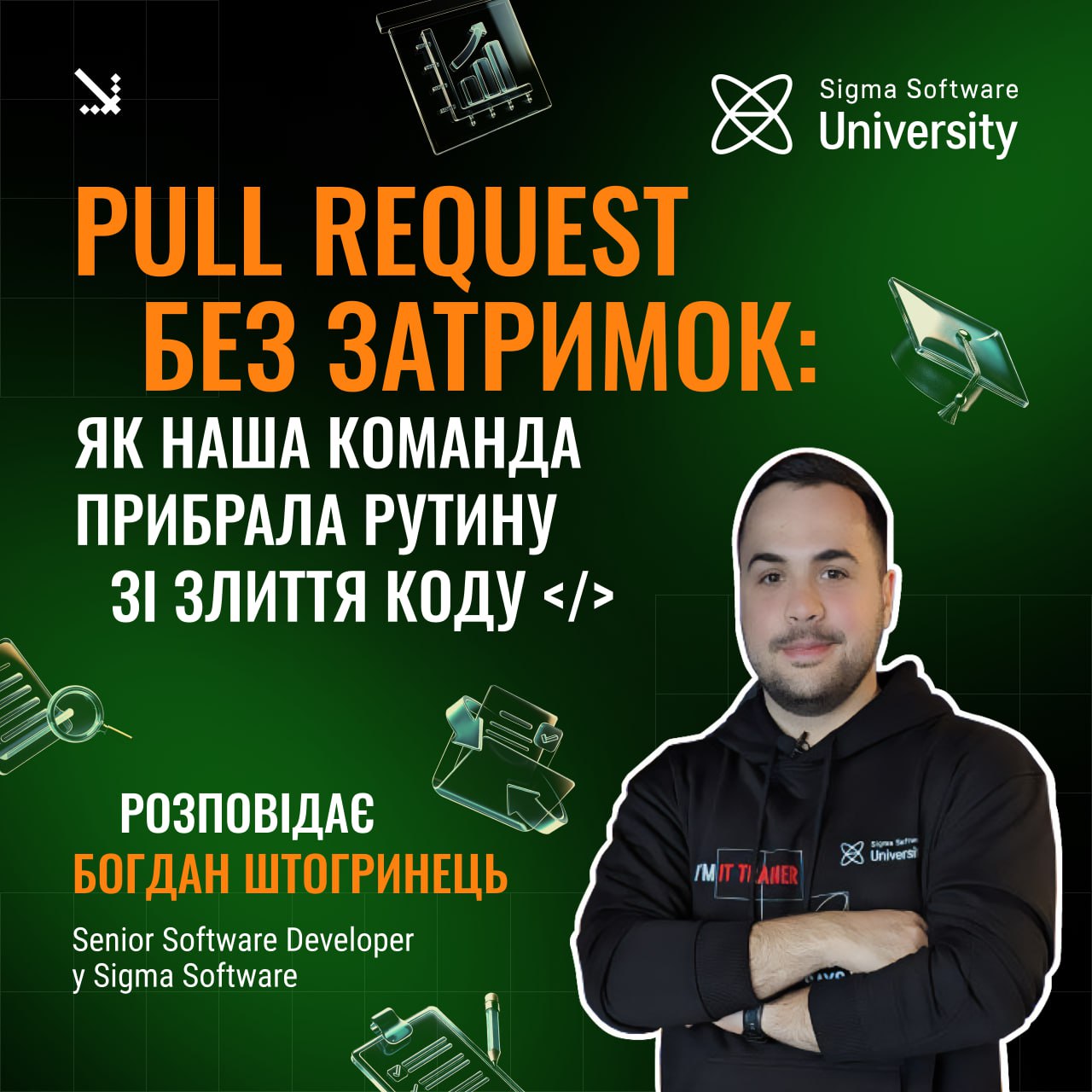 Експерт Богдан Штогринець, Senior Software Developer у Sigma Software і ментор нашого університету, ділиться реальним кейсом, як команда автоматизувала злиття PR’ів, прибрала рутину й прискорила розробку.