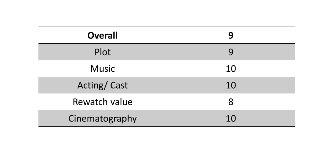 • پلات: موضوع کلی، شخصیت پردازی و بسط قصه و موضوعات فرعی همگی عالی بودن. باید توجه کنید که با یه پلات اسلوبرن و درام طرف هستید و رمنس داستان بالغانه و ملموسه. قرار نیست چیزی ماورایی باشه که البته همین مسئله باعث میشه فیلمنامه گیرا باشه.