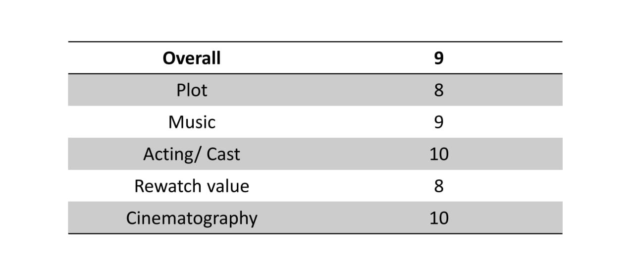 • موسیقی متن: با توجه به ژانر و پلات جذاب بود. افکتهایی که داشتیم به حس قصه کمک زیادی میکردن و ostهایی که در مواقع خاص شنیده میشد همخوانی خوبی با سکانس داشت.