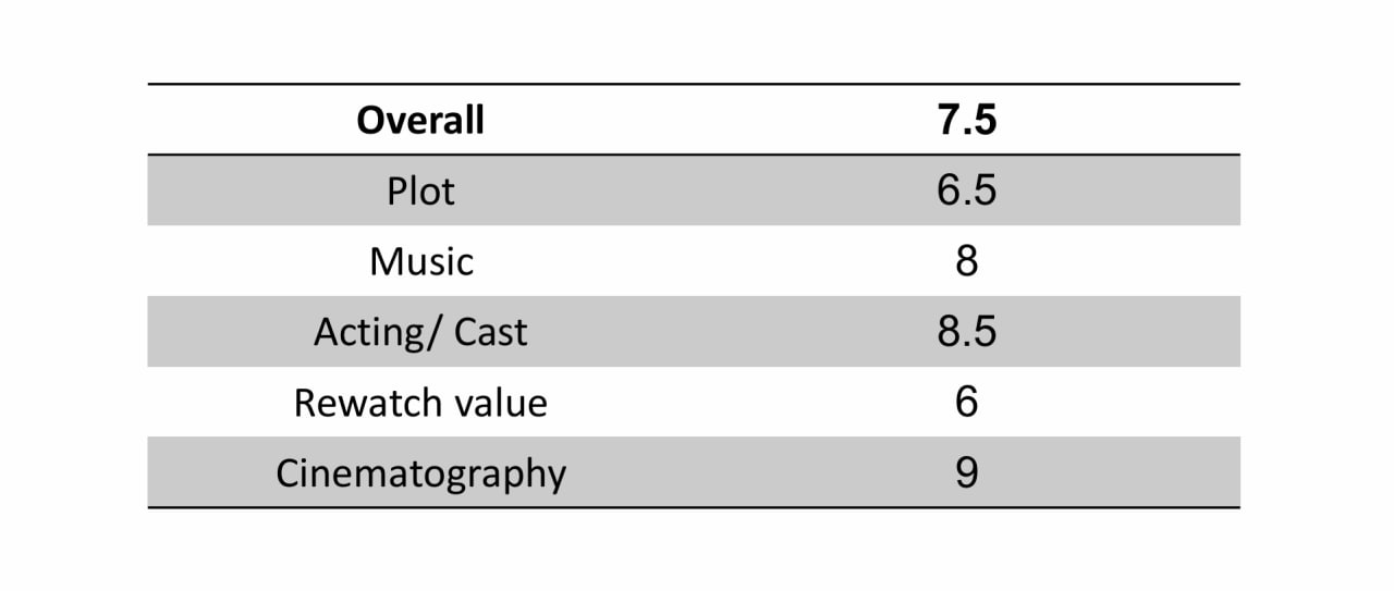 • کارگردانی: میشه گفت جدای از مشکل پلات، کارگردانی بی نقص بود. قاب بندی دوربین، طراحی صحنه، بازی گرفتن از بازیگرا و سایر مولفههای کارگردانی تقریبا بی مشکل بود.