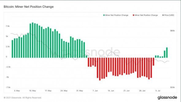 Уже в начале этого месяца тренд начал меняться, и майнеры сначала сократили продажи BTC, а после 5 июля они стали преимущественно хранить криптовалюту.