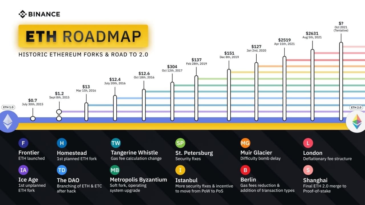 🔥 После активации хардфорка London сожжено 5 000 ETH. 👉 А вот динамика курса ETH после каждого хардфорка.