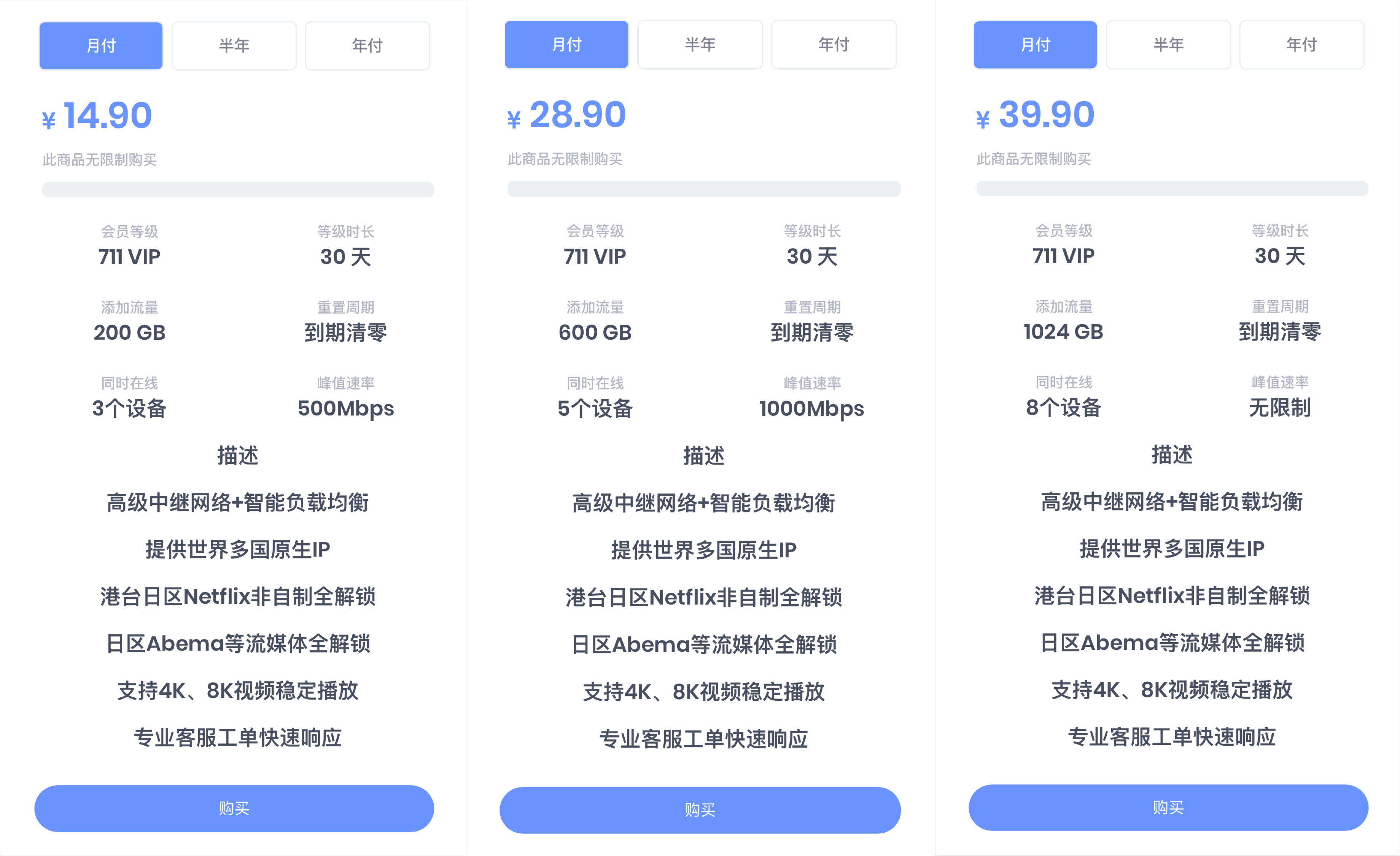 3.99元1T/月 5.99元2T/月 7.99元4T/月