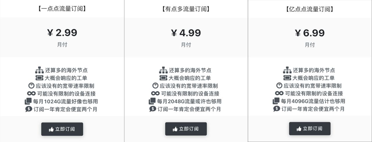 3.99元1T/月 5.99元2T/月 7.99元4T/月