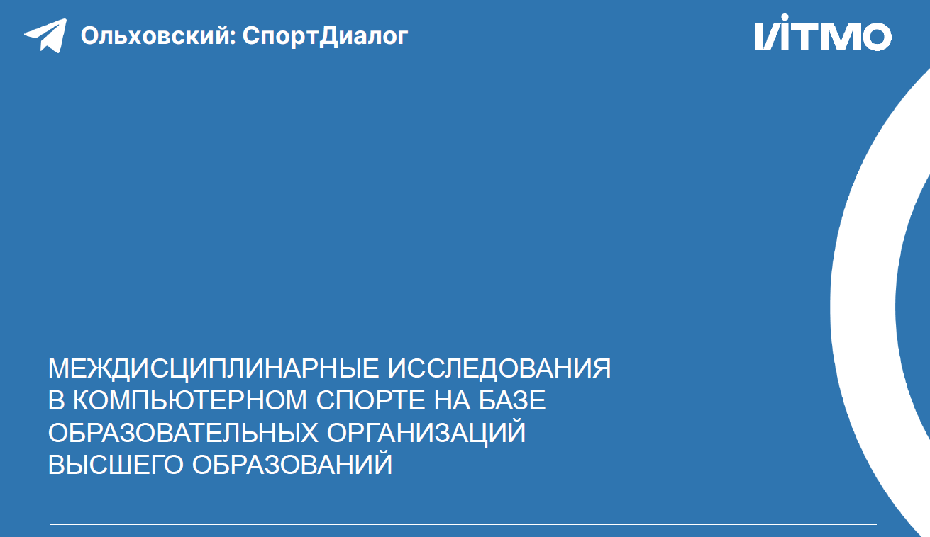 Из моего выступления на круглом столе «Компьютерный спорт в науке: статьи, исследования, конференции. Вчера. Сегодня. Завтра» выступил с докладом "Междисциплинарные исследования в компьютерном спорте на базе образовательных организаций высшего образования":