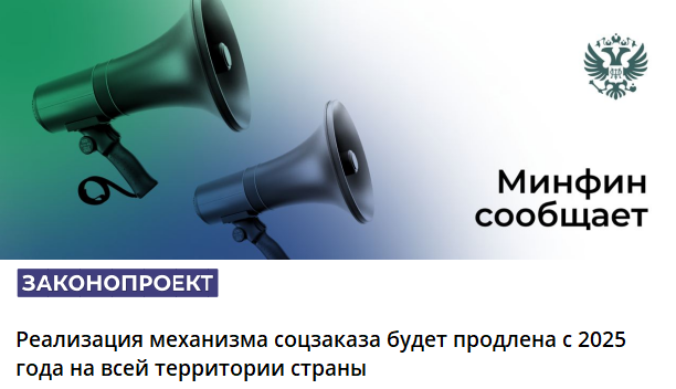 После принятия закона реализация механизма социального заказа с 2025 года будет продлена на всей территории страны, а не только в "пилотных" регионах.