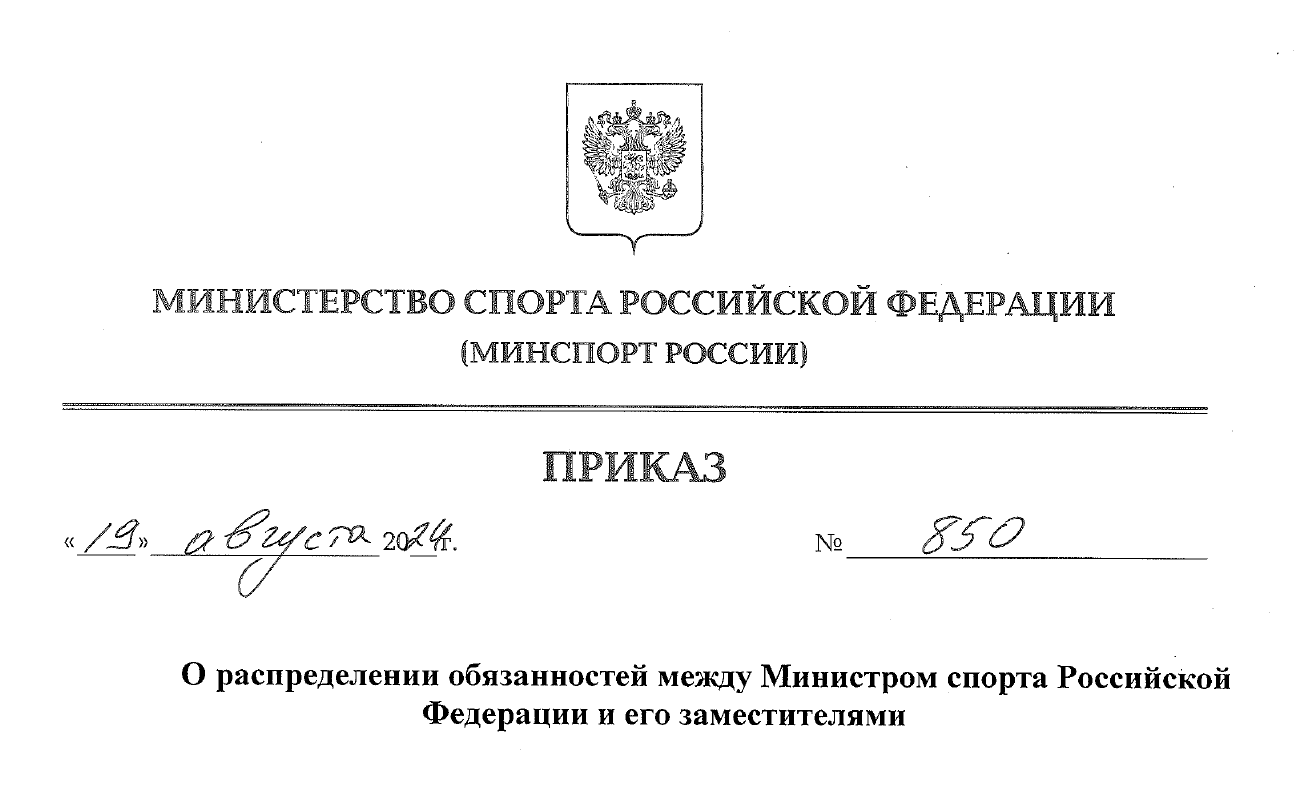 ✍️ Соответствующий приказ №850 от 19 августа 2024 года подписал Министр спорта РФ.