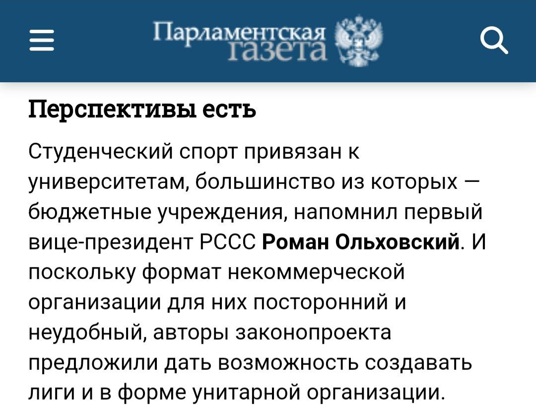 Со своей стороны на правах председателя Совета студенческих спортивных лиг Российского студенческого спортивного союза в интервью высказал следующую позицию: