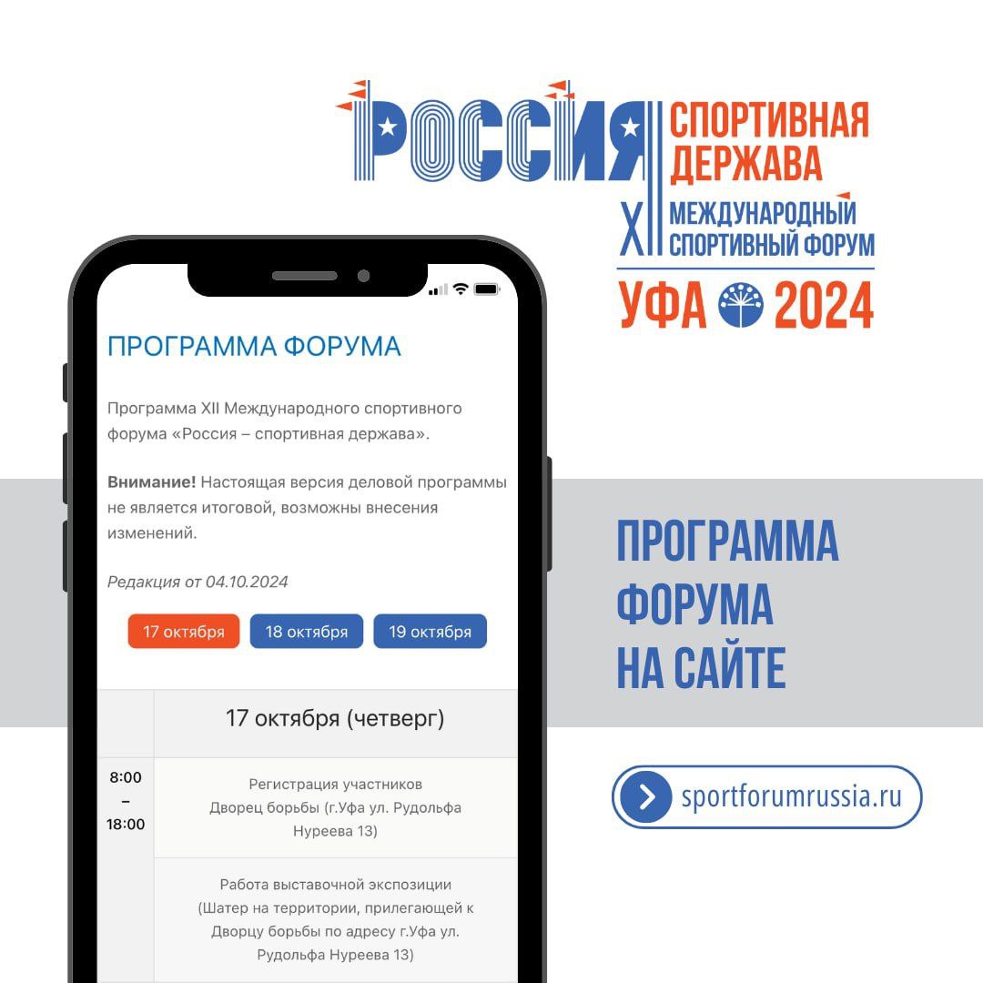 Опубликована деловая программа XII Международного спортивного форума "Россия - спортивная держава" В рамках программы планирую участие в качестве модератора и спикера на следующих секциях: 📍 17 октября 10.30-12.00, зал 1 (модератор) Круглый стол: «Государственный…