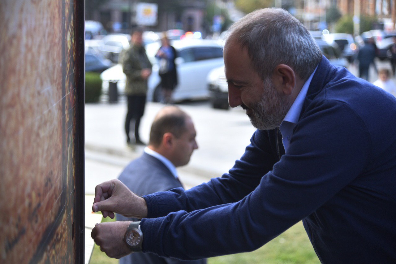 Премьер Никол Пашинян разместил последнюю деталь в пазле "Обещанный дедушкой и бабушкой матах" в Гюмри.
