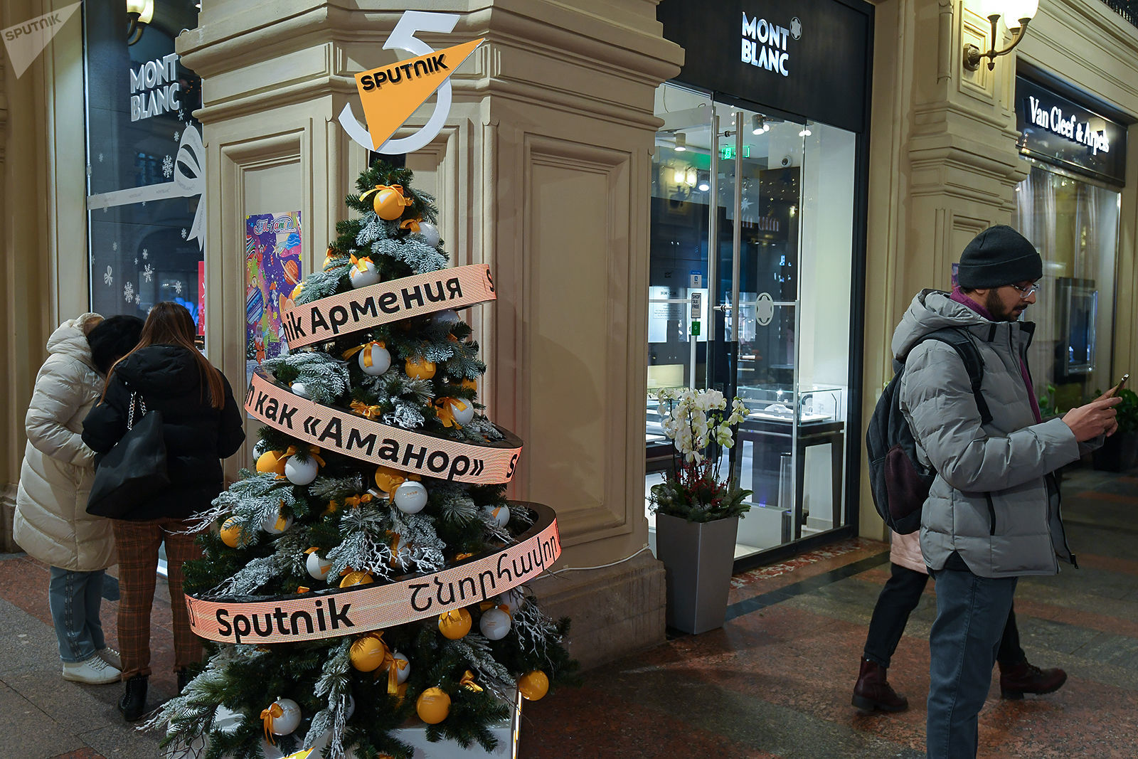 🔸Ответы на вопросы когда в древности отмечался армянский Новый год и кого армяне навещают первыми - посетители ГУМа узнают из бегущей строки, опоясавшей. елку.