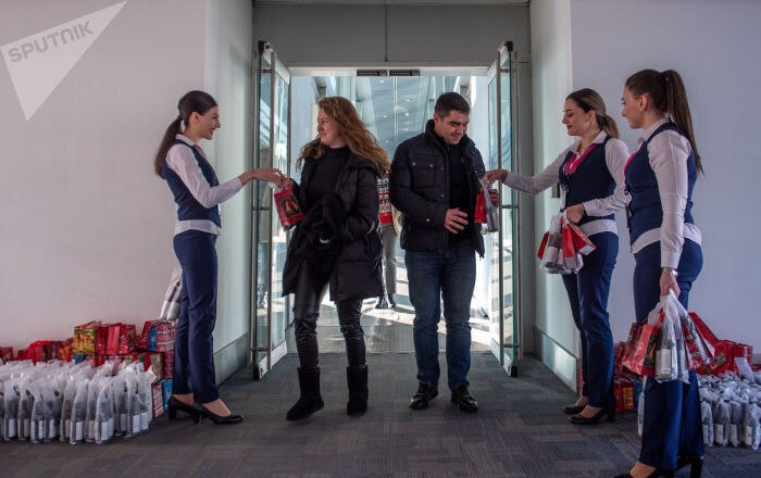 🔺 "Юбилейный" рейс пришелся на Москву-Ереван, пассажиров которого по прибытии ждал приятный сюрприз – сладости, хорошее вино и приятная музыка.