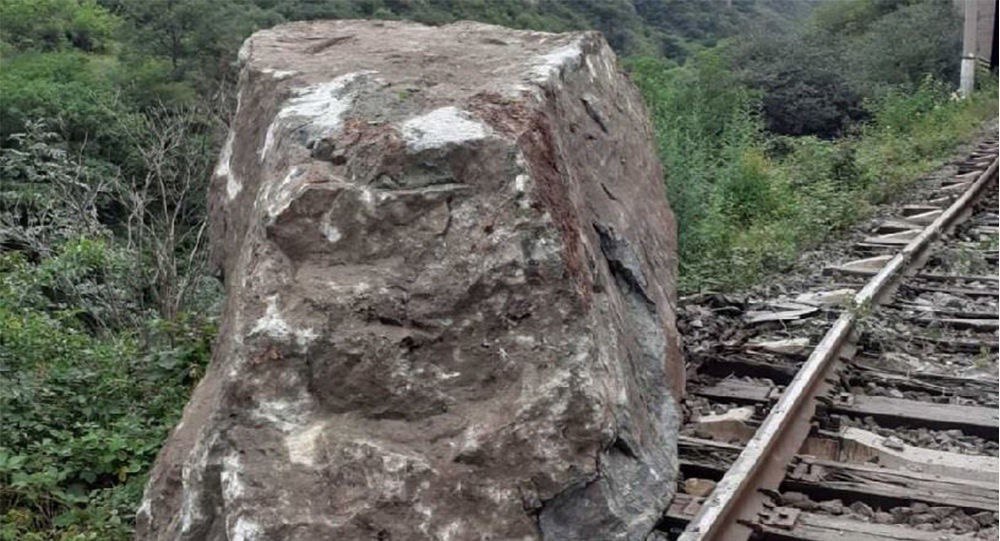 Упавшая каменная глыба повредила участок железной дороги на севере Армении. 🚊