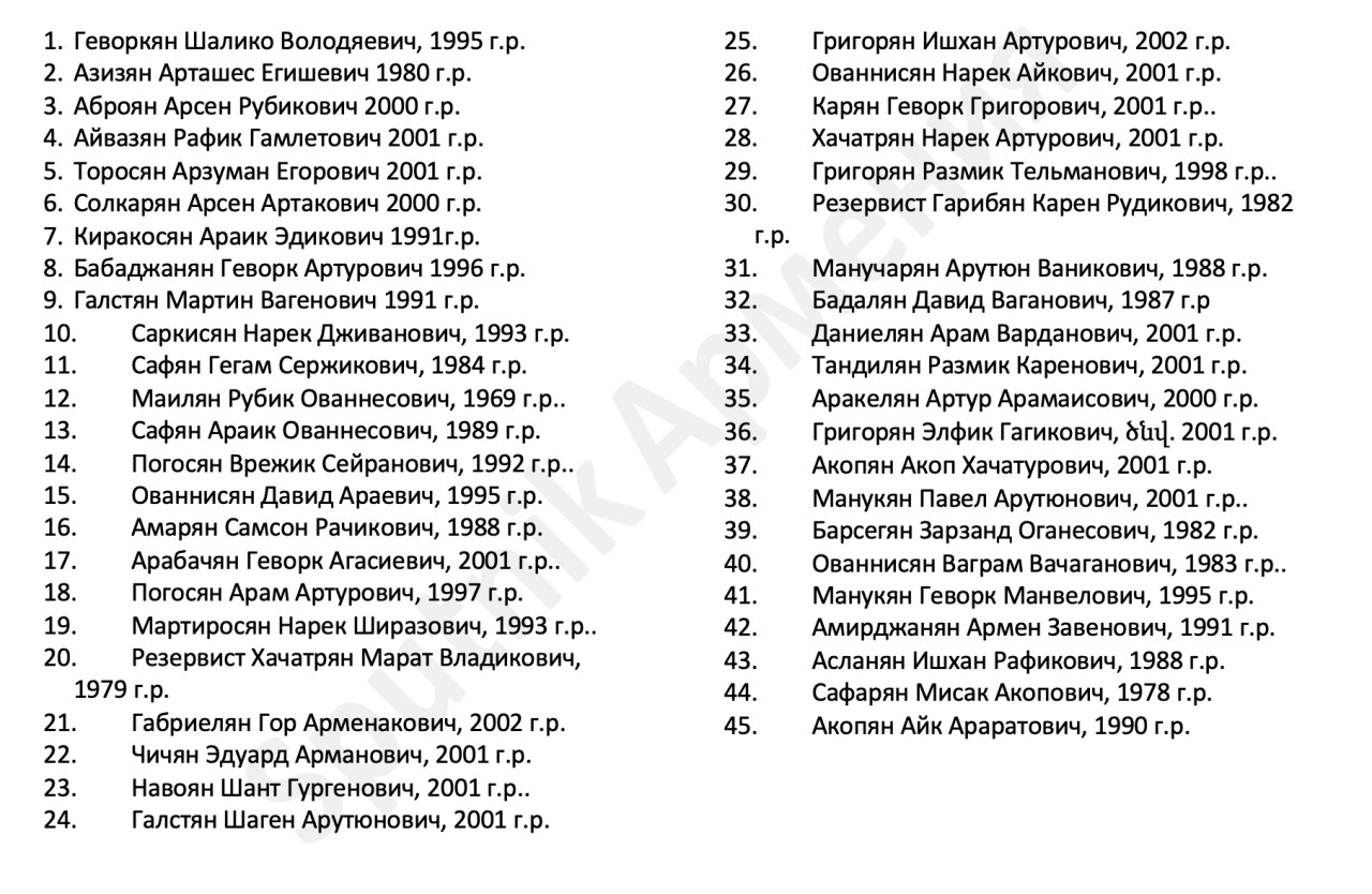 🕯Второй список погибших армянских военнослужащих в Нагорном Карабахе за 12 октября - в нем 45 новых фамилий (всего потери с армянской стороны составили более 525 военных)