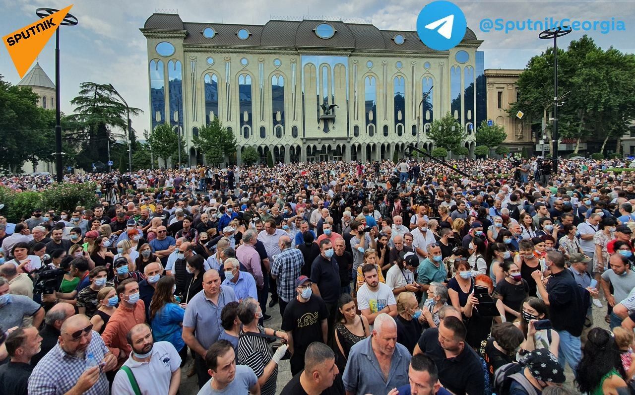 📌 Акция с требованием отставки правительства была спланирована в ответ на гибель оператора телекомпании "Пирвели" Лексо Лашкарава, жестоко избитого во время беспорядков 5 июля.