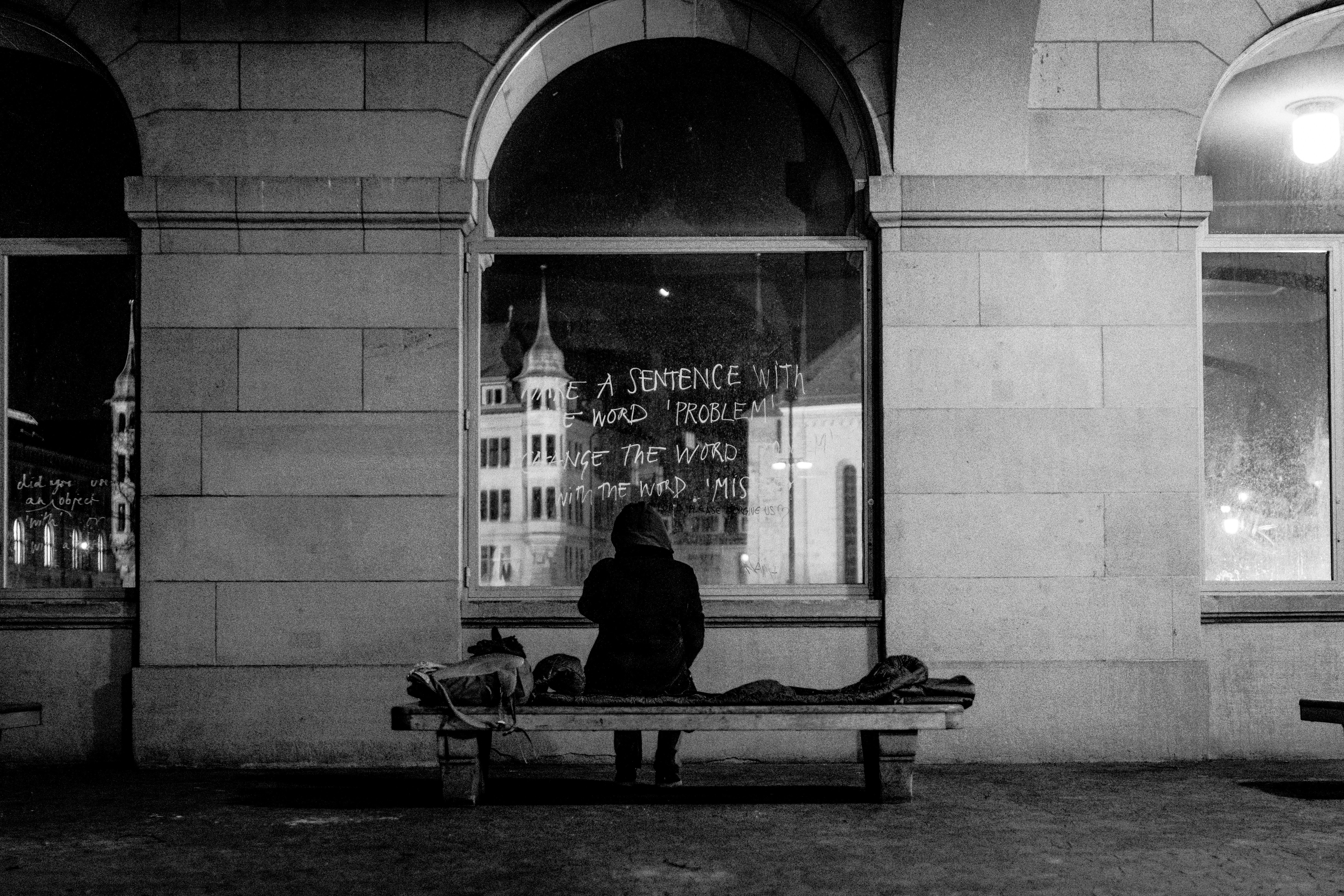 grayscale photo of 2 men in jacket and hat sitting on chair