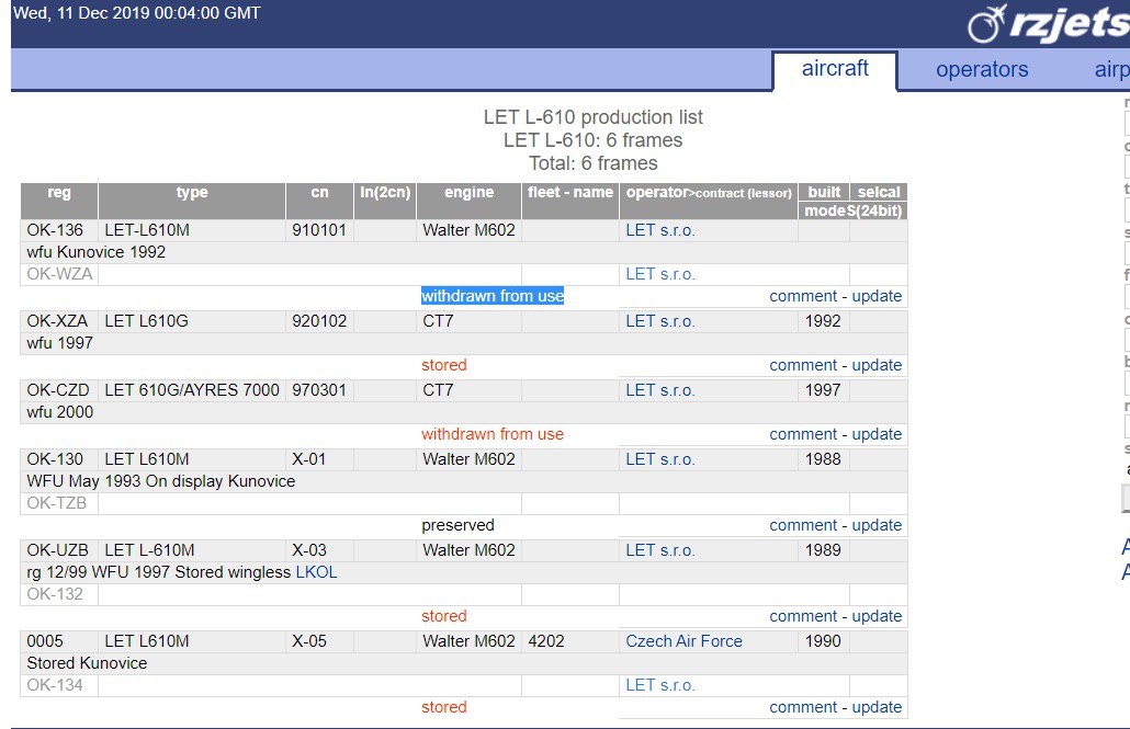 Владимиру Владимировичу наверняка было бы интересно узнать, что за 40 лет было выпущено всего 8 самолетов L-610, из которых только 6 совершали перелеты, а 2 были выпущены для проведения летных испытаний (см. приложение).