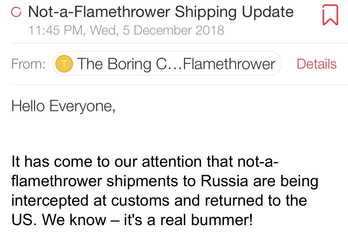Российская таможня не пропустила через границу «неогнемёт» Илона Маска, рассказали клиентке представители Boring Company.