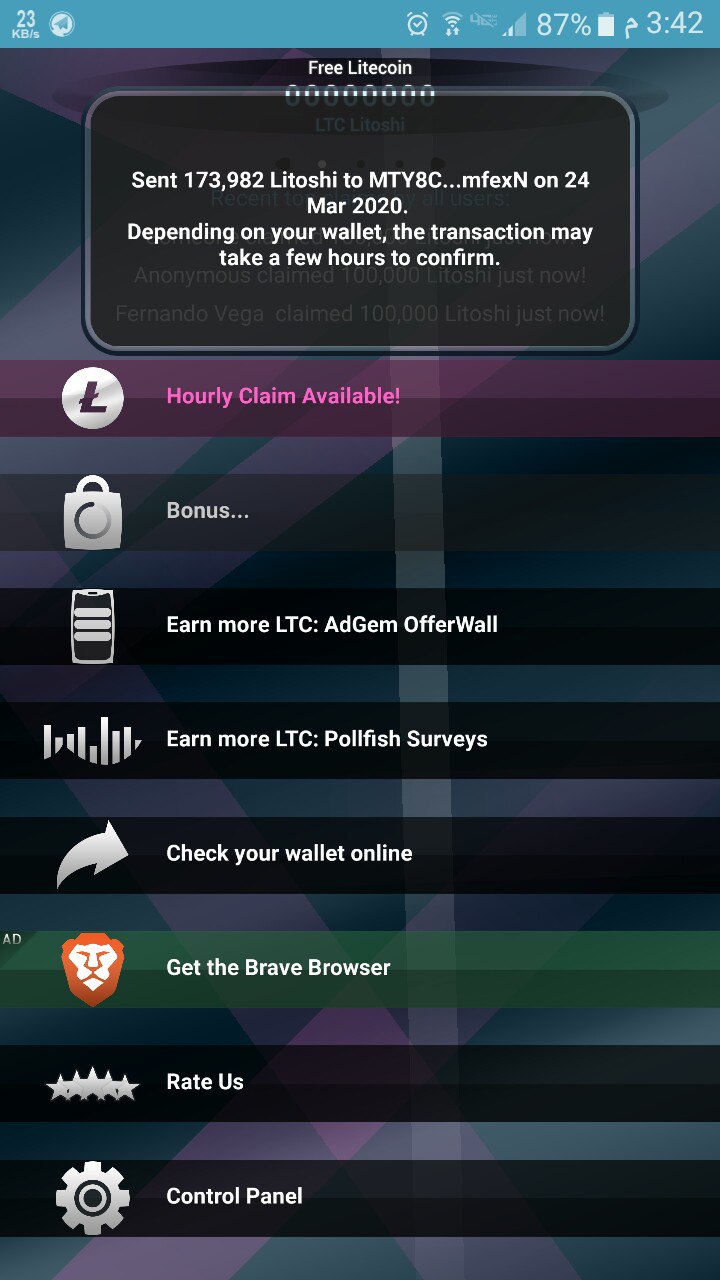التطبيق الاول free LTCالتطبيق صغير جدا يمكنك تحميلة من جوجل بلايلتحميل التطبيق التطبيق الاول LTC اضغظ هنا التطبيق الثاني BCH اضغط هنا بعد التثبيت افتح التطبيق التسيجل عن طريق البريد الالكتروني و عنوان محفظة litcoin يوجد شرح للمحفظة هنا التطيبق يعطيك claim…