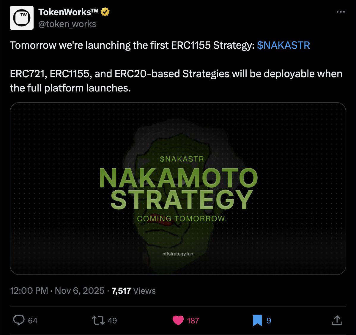 After some months of discussion and awesome dev work by TokenWorks the first ERC1155 Strategy collection was born, $NAKASTR.