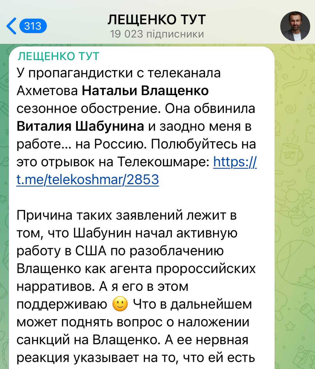 Так называемая журналистка Наташа Влащенко обвинила уважаемого товарища Шабунина в низкопоклонстве перед Россией. А не посмотреть ли нам, членам партии Слуга Народа, на этот вопрос с другой стороны - не могут ли подобные нападки Влащенко быть связанными с тем, что она САМА занимается низкопоклонством, но перед Западом?!