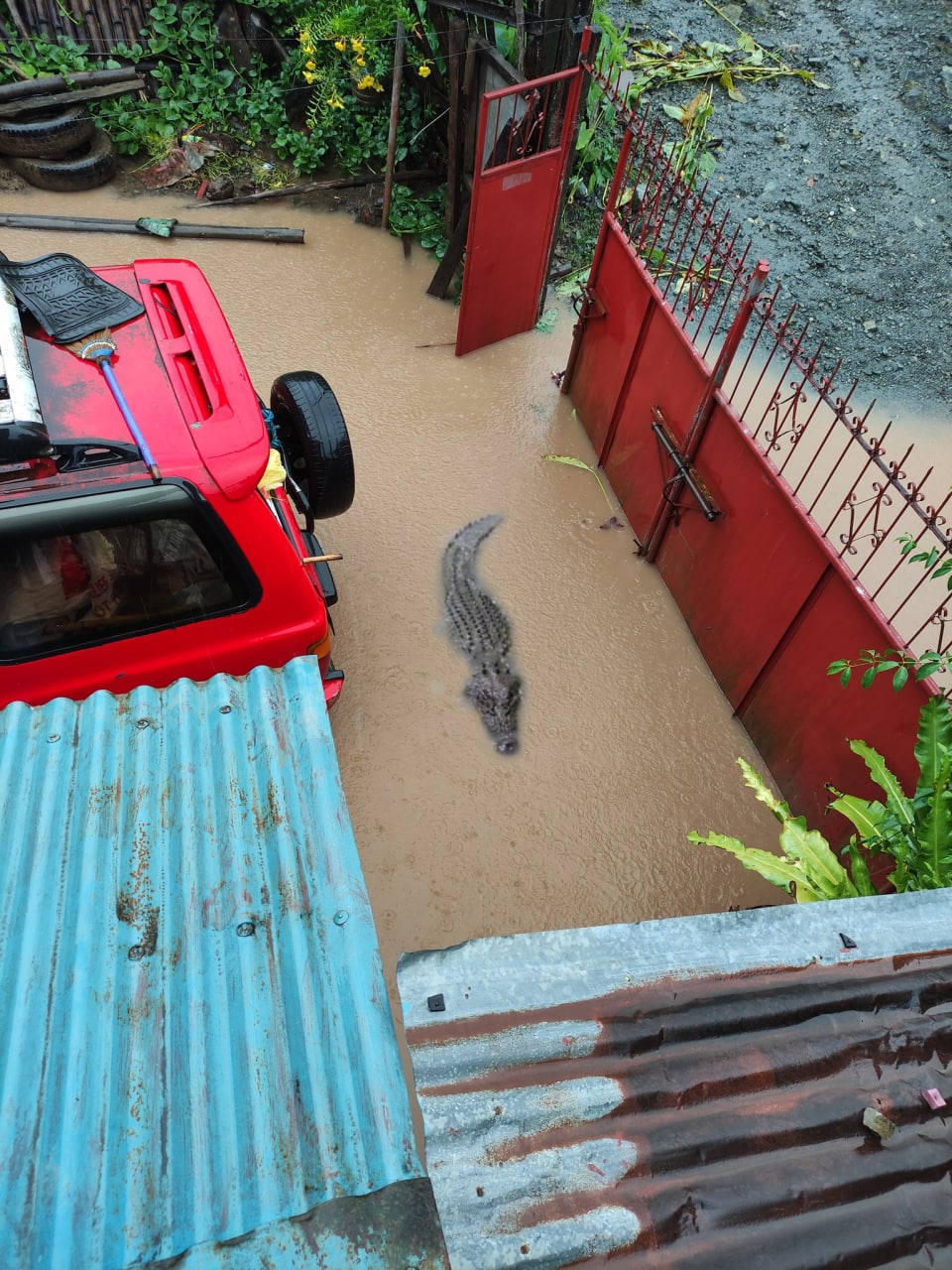 В украинском сегменте социальных сетей распространяется информация о том, что в результате аномальных дождей в Ялте был разрушен крокодиляриум и крокодилы якобы «вырвались на свободу», разгуливая по улицам и участкам города. В качестве доказательства приводится фотография крокодила во дворе частного дома со следующей подписью: