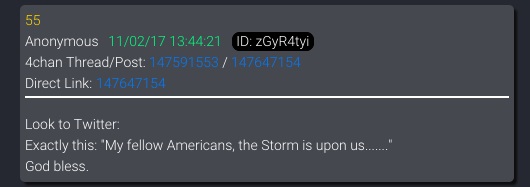 "My Fellow Americans, The Storm Is Upon Us", is damn near trending on Twitter right now as Patriots are trying to stand in solidarity to show their support for President Trump.