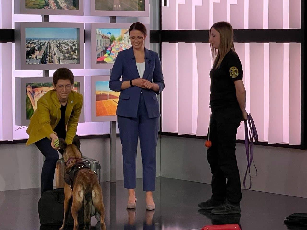 💥Вчора в телеефірі Ранок на Суспільному співробітники Київської митниці - неймовірна Харді з красунею-кінологинею Тетяною - демонстрували свої професійні якості. Харді виявила всі приховані речі, їй навіть довелося обшукати ведучого 😃