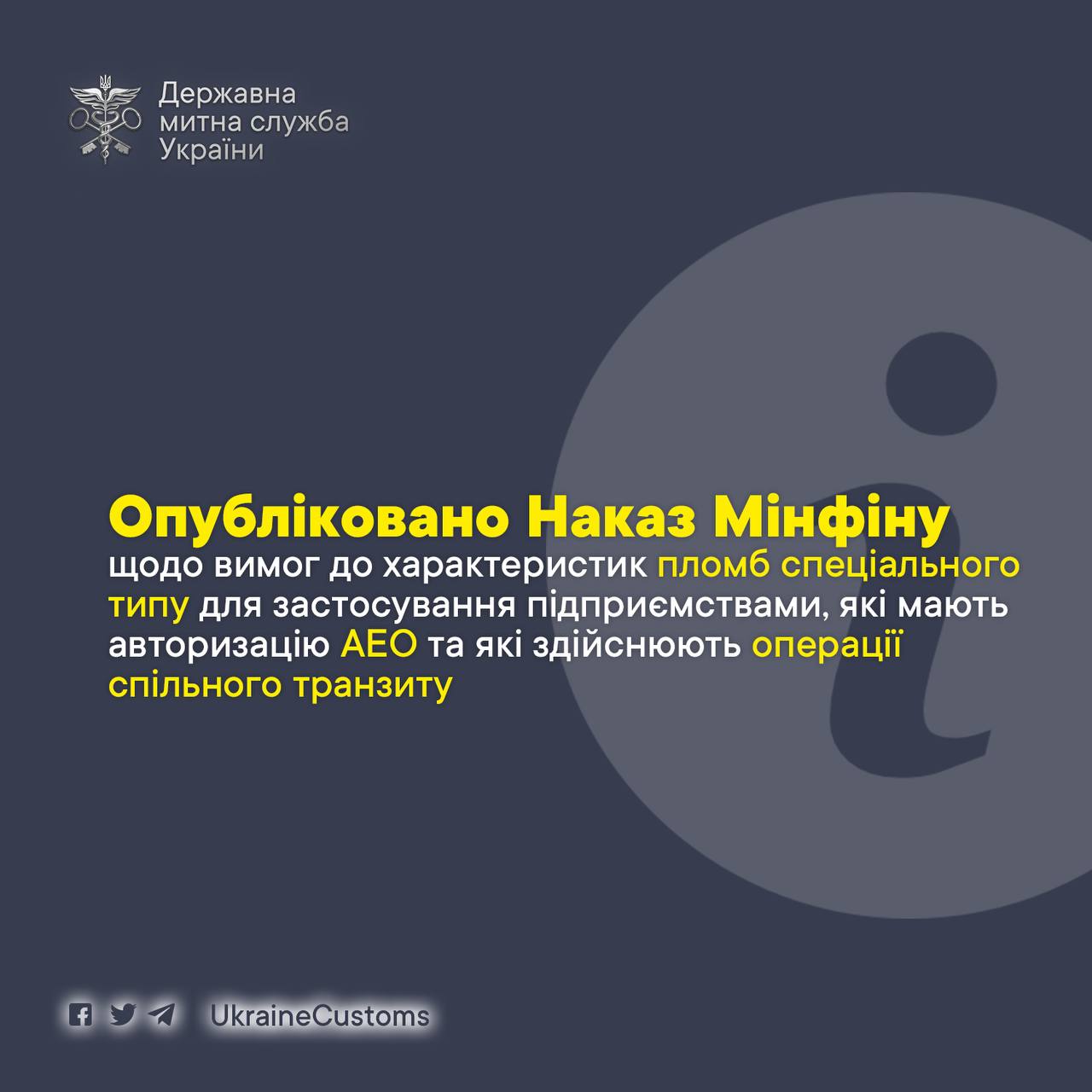 🔥 Опубліковано Наказ Мінфіну щодо вимог до характеристик пломб спеціального типу для застосування підприємствами, які мають авторизацію АЕО та які здійснюють операції спільного транзиту