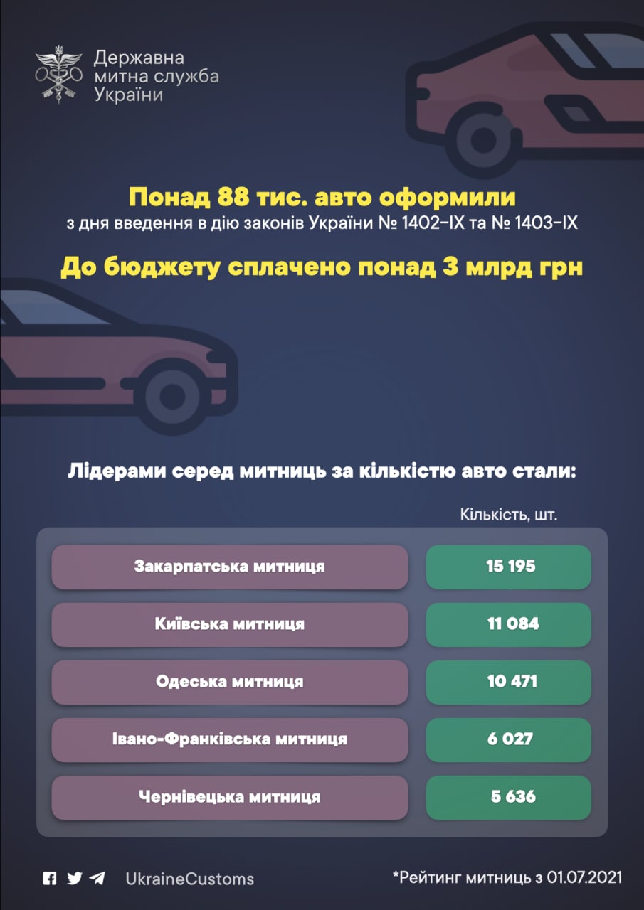 🥇🥈🥉Лідерами серед митниць за кількістю оформлених авто стали: