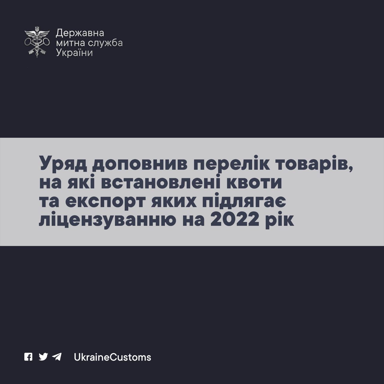 📌Уряд доповнив перелік товарів, на які встановлені квоти та експорт яких підлягає ліцензуванню на 2022 рік
