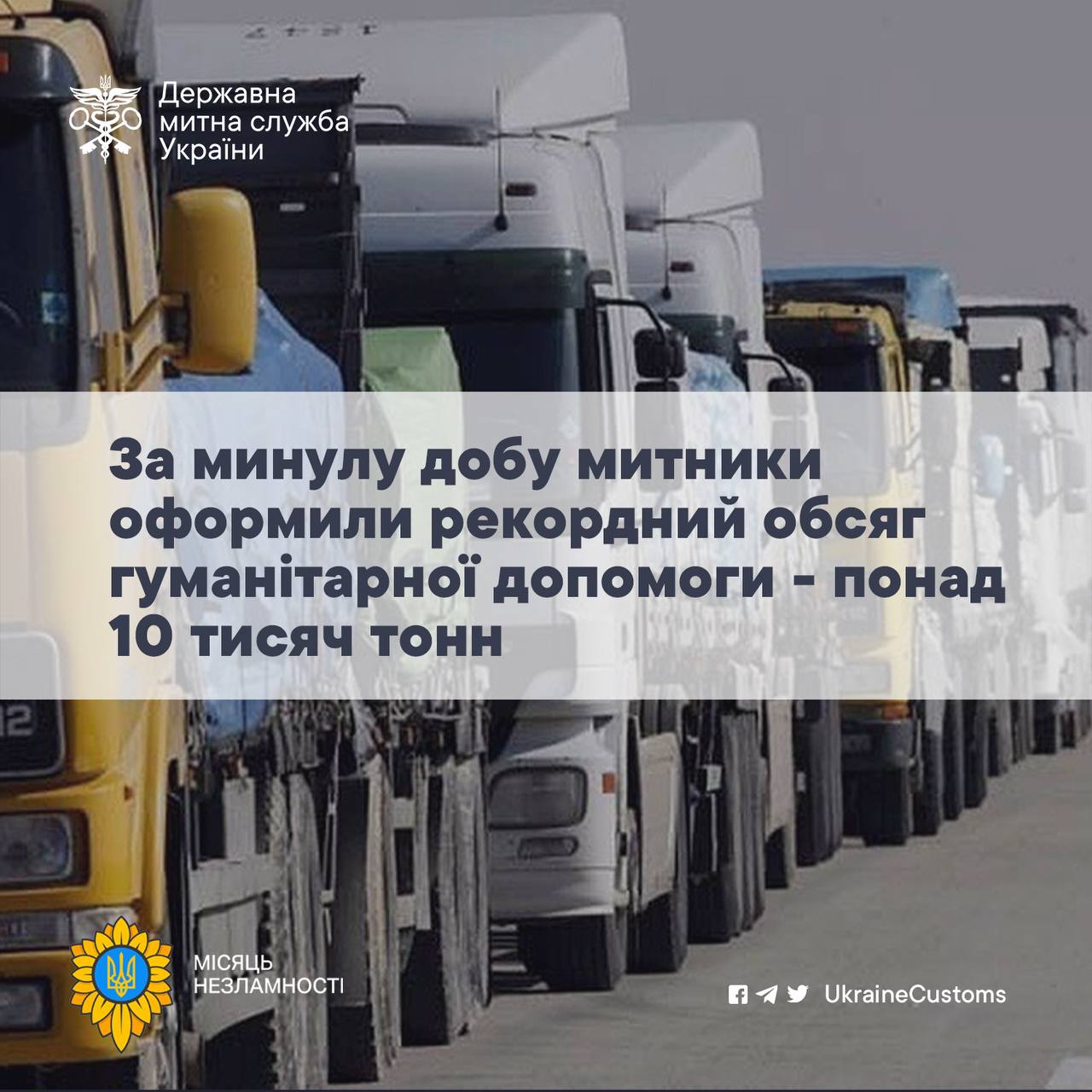 ⚡️ За минулу добу Україна отримала рекордний обсяг гуманітарної допомоги - понад 10 тисяч тонн 🚛