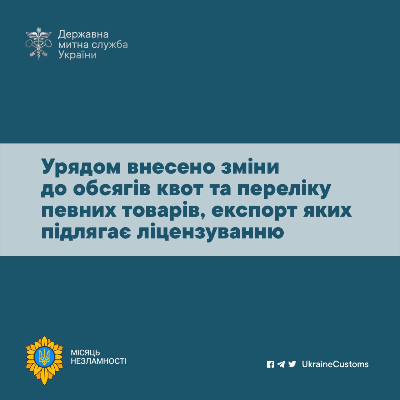 Уряд прийняв рішення про внесення змін до обсягів квот та переліку певних товарів, експорт яких підлягає ліцензуванню.