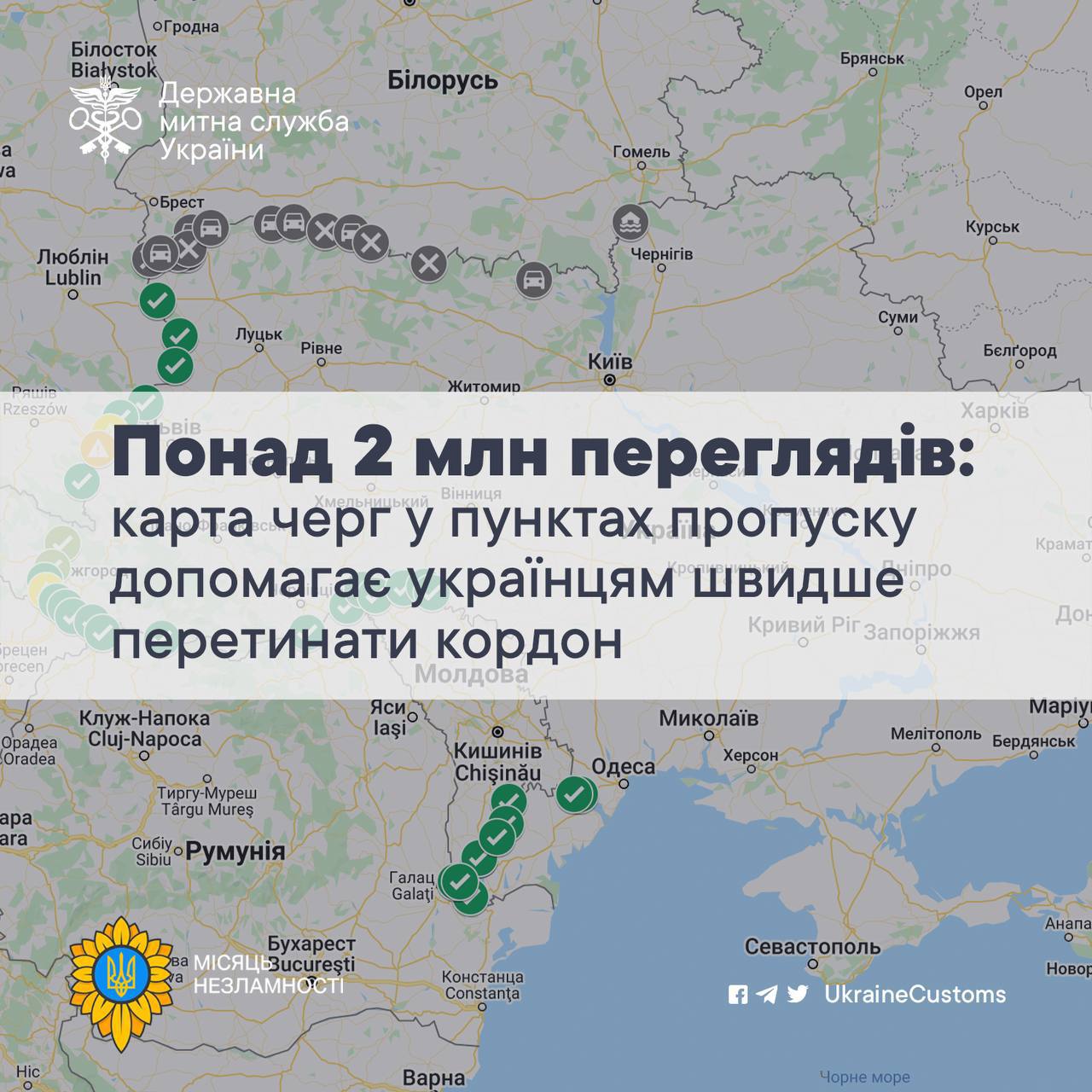 🆒Понад 2 млн переглядів: інтерактивна карта з інформацією про черги у пунктах пропуску допомагає українцям швидше і комфортніше перетинати кордон