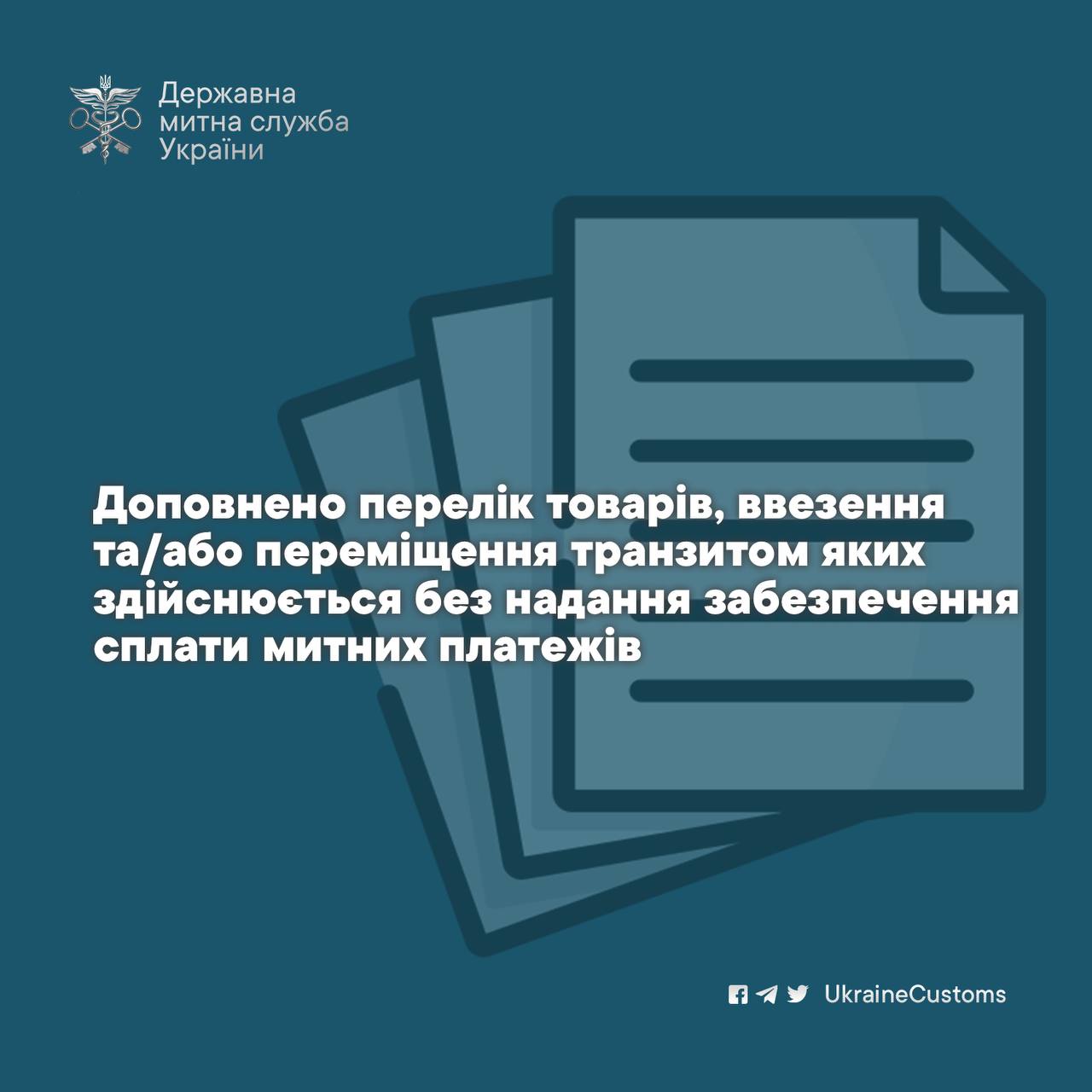 Із зазначеної дати ввезення та/або переміщення територією України транзитом більшості товарів потребуватиме надання митним органам забезпечення сплати митних платежів.