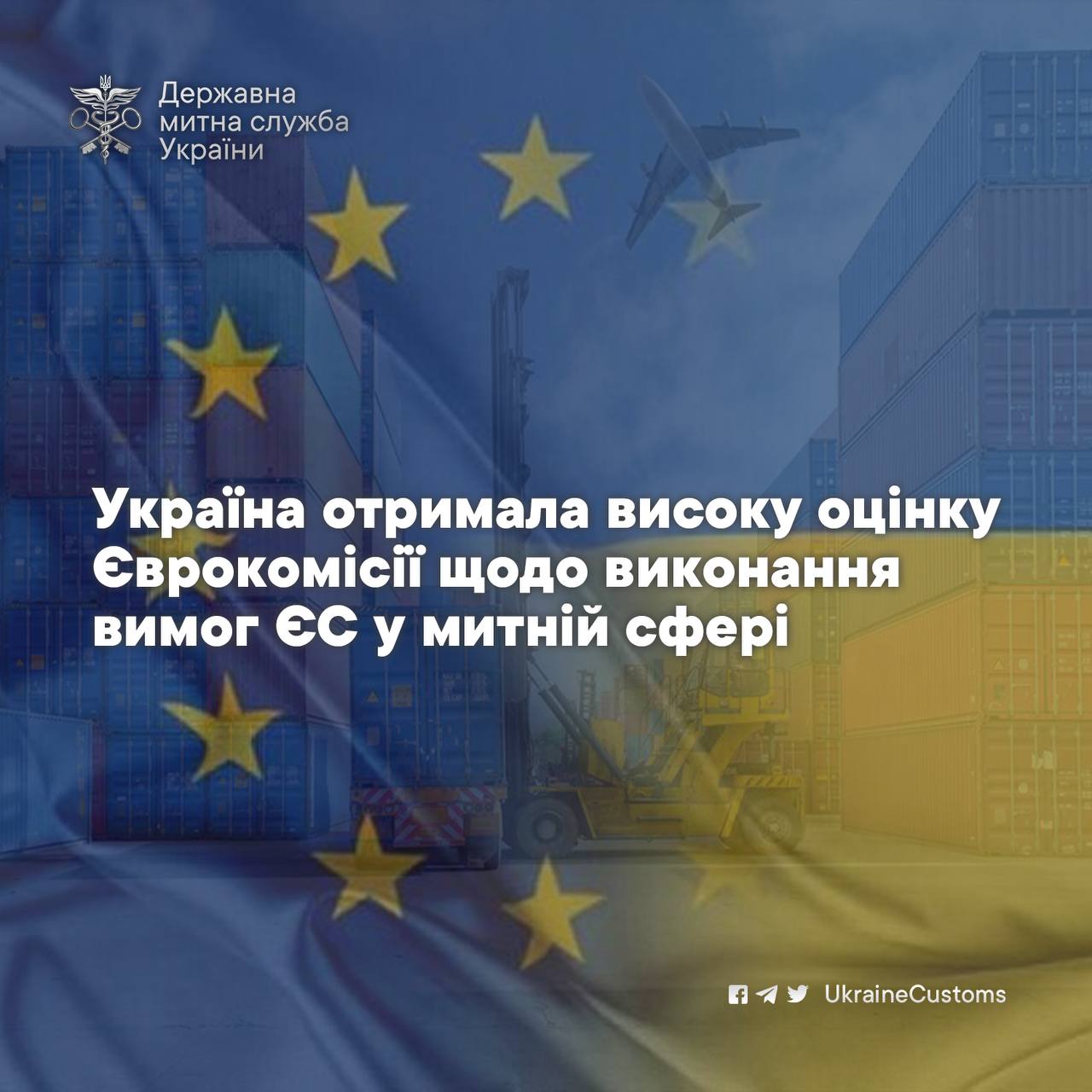 ✅Україна отримала високу оцінку Єврокомісії щодо виконання вимог ЄС у митній сфері