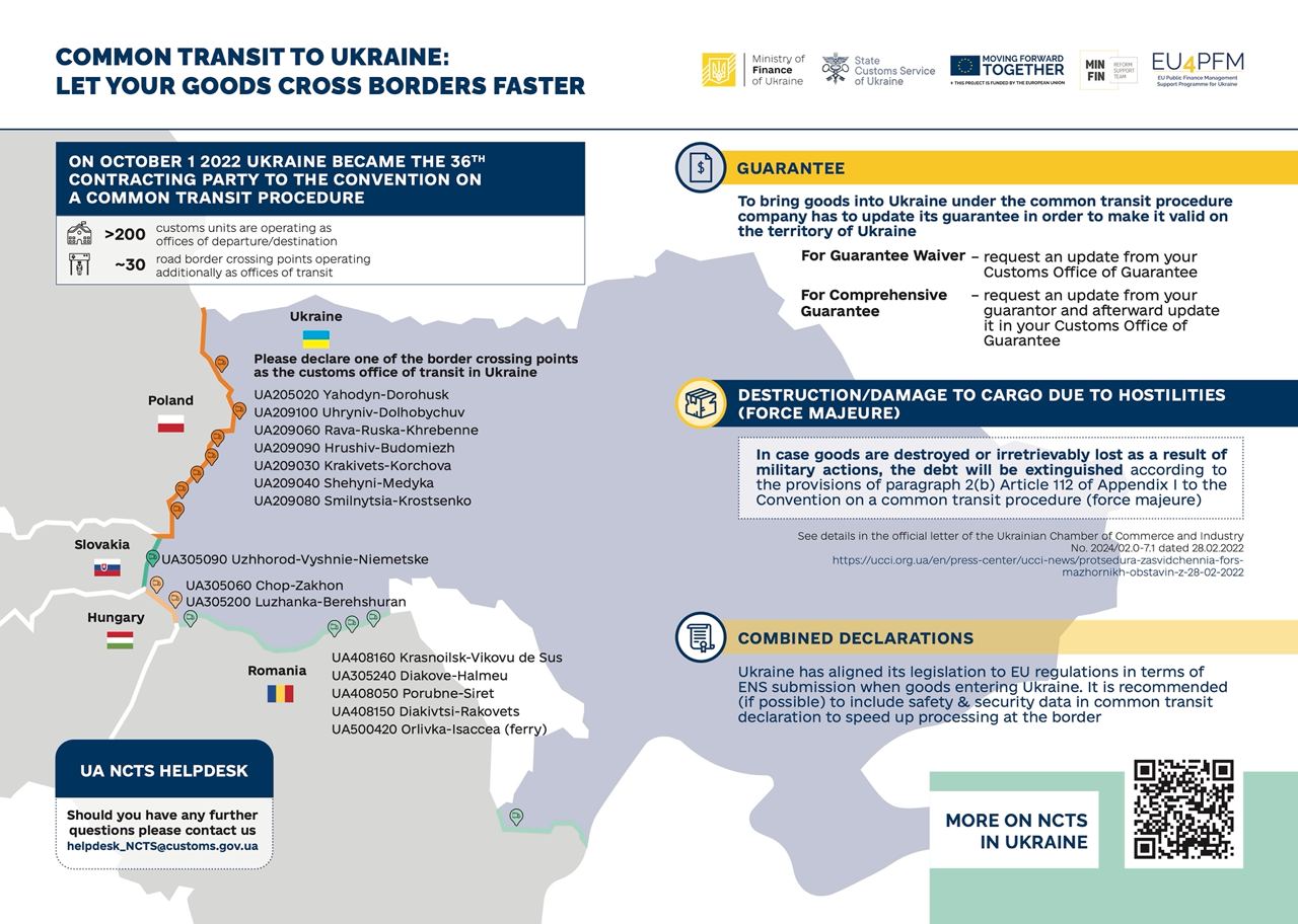 Вона складається з інфографіки https://bit.ly/3STFmSa «Спільний транзит в Україну: нехай ваші товари перетинають кордони швидше» («Common transit to Ukraine: let your goods cross borders faster»), а також з «Роз’яснення Державної митної служби України компаніям, які використовують процедуру спільного транзиту, та гарантам, які надають зобов’язання відповідно до Конвенції про процедуру спільного транзиту, при транзиті товарів в Україну або через її територію» https://bit.ly/3muVNbF