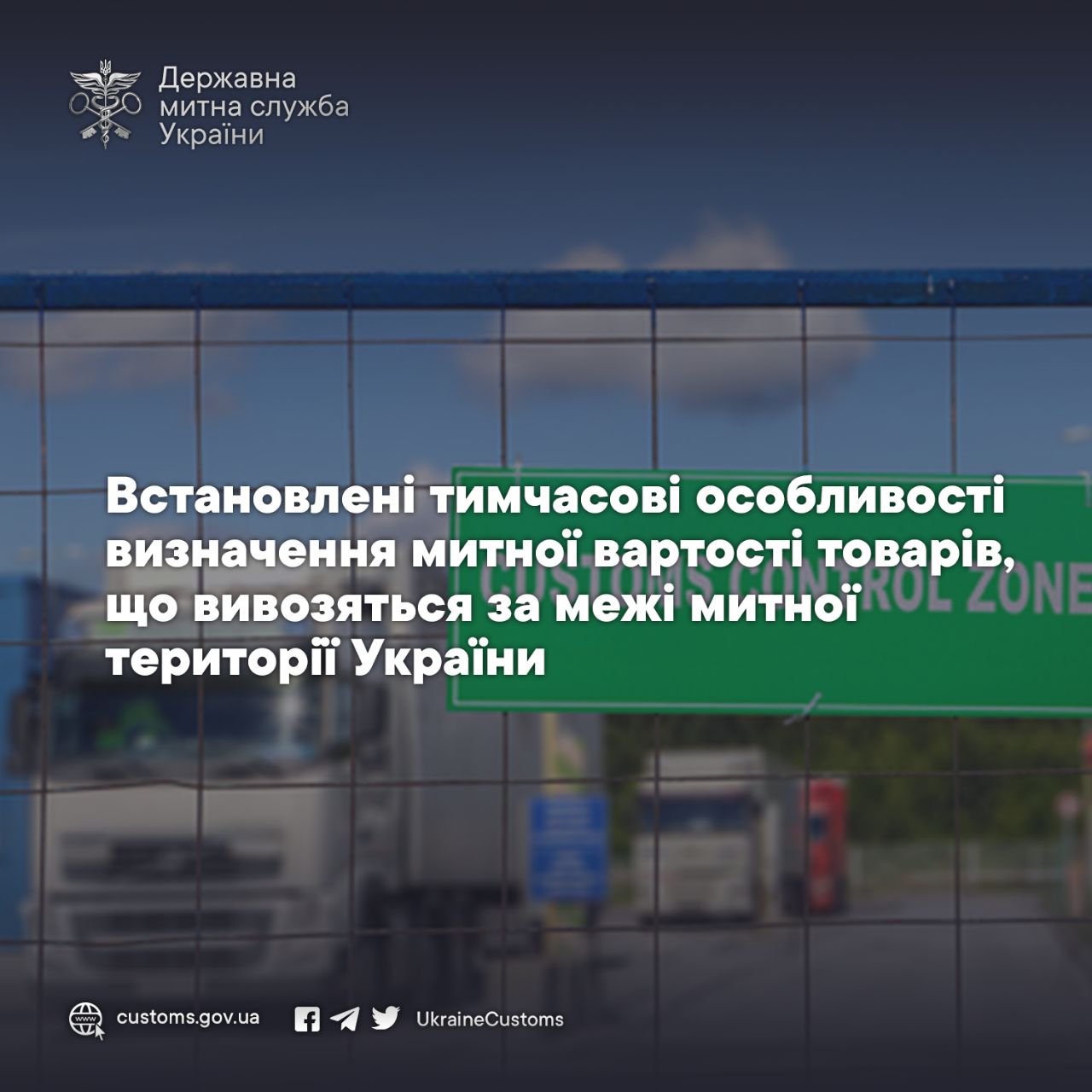 ✅Встановлені тимчасові особливості визначення митної вартості товарів, що вивозяться за межі митної території України
