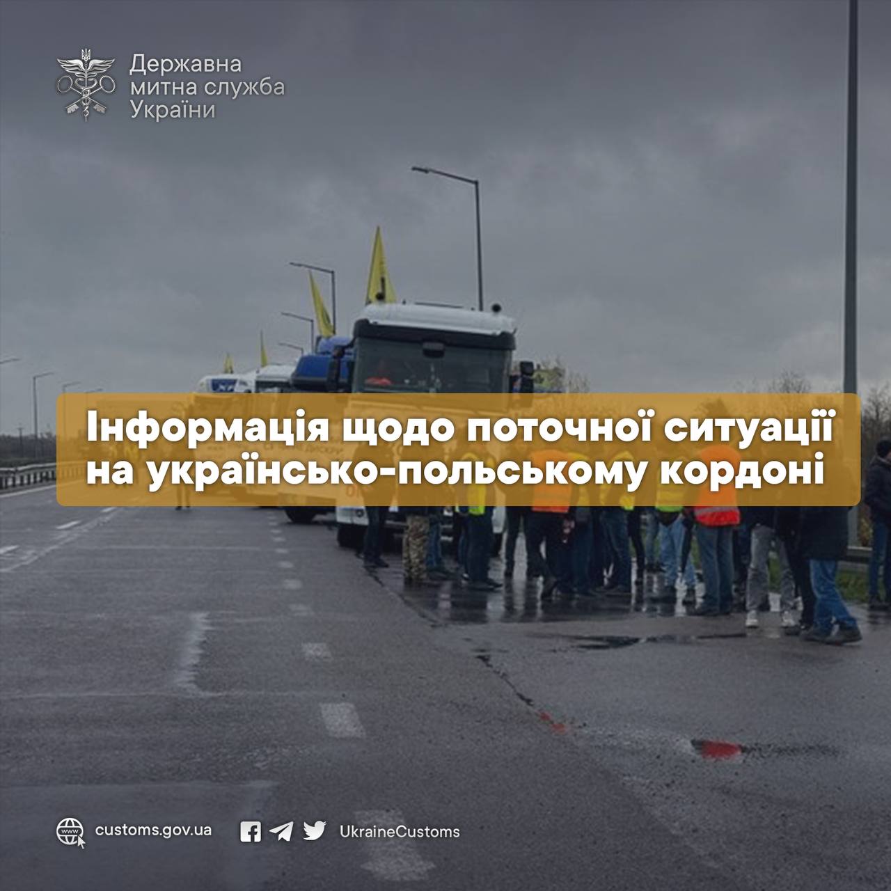 Зважаючи на блокування руху вантажних транспортних засобів через митний кордон України 17 листопада 2023 року Служба підтримки з питань NCTS Держмитслужби в рамках взаємодії направила до усіх країн-учасниць Конвенції про процедуру спільного транзиту звернення щодо врахування ситуації, яка склалась на українському кордоні, при завершенні розпочатих в Україні процедур спільного транзиту, зокрема в частині можливого порушення термінів доставки через незалежні від перевізників обставини.