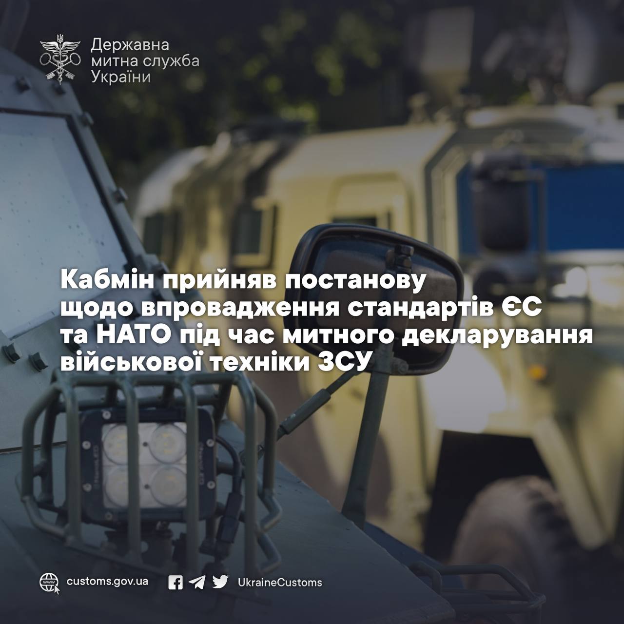 ⚡️Кабмін прийняв постанову щодо впровадження стандартів ЄС та НАТО під час митного декларування військової техніки ЗСУ