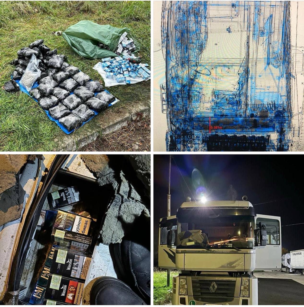 За допомогою технічних засобів митного контролю інспектори-пошуківці дістались до кількох тайників з понад 2150 пачками сигарет різних марок з українським акцизом. Окрім тютюнової контрабанди було виявлено і 47 пакунків з речовиною, схожою на марихуану.