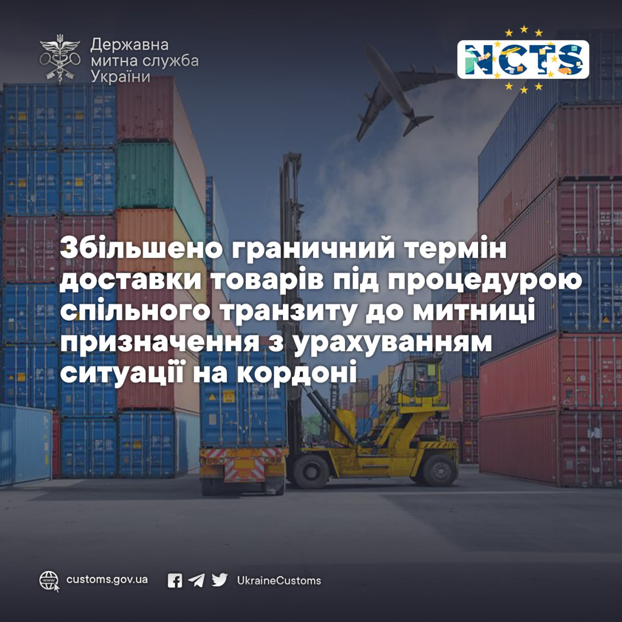 📢Держмитслужба інформує про збільшення граничного терміну доставки товарів під процедурою спільного транзиту до митниці призначення з урахуванням ситуації на кордоні