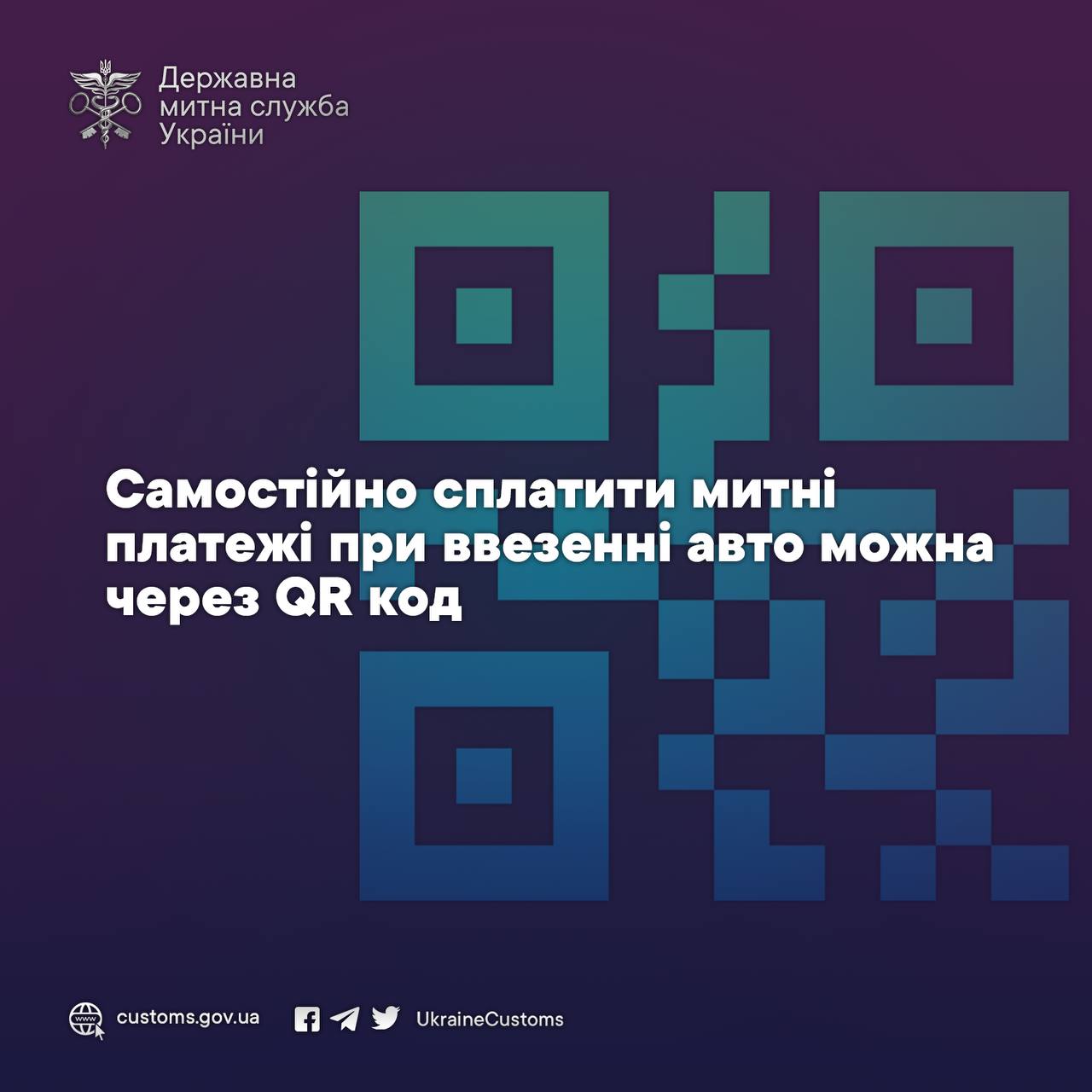 Держмитслужба розширила можливості ІТ-сервісу "Єдине вікно для міжнародної торгівлі", аби громадяни мали змогу самостійно сплатити митні платежі при ввезенні авто на депозитний рахунок відповідної митниці через QR код в один клік.