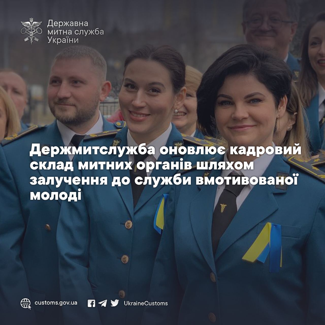 ℹ️ Якщо ви також бажаєте працювати у митних органах України, переходьте за посилання https://customs.gov.ua/robota-z-personalom, за яким розміщена вся необхідна інформація щодо можливості працевлаштування у Держмитслужбі. За цим же посиланням можна долучитися до експериментального проєкту з формування резерву працівників для роботи у митних органах на деокупованих територіях України.