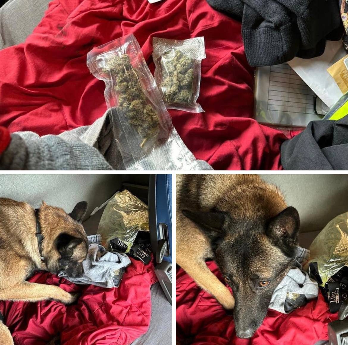 Під час митного контролю вантажівки у кабіні водія інспектор-кінолог разом зі своїм чотирилапим помічником Джоні виявили паперовий пакет, в якому знаходилася невідома речовина зелено-коричневого кольору, за зовнішніми ознаками схожа на марихуану.