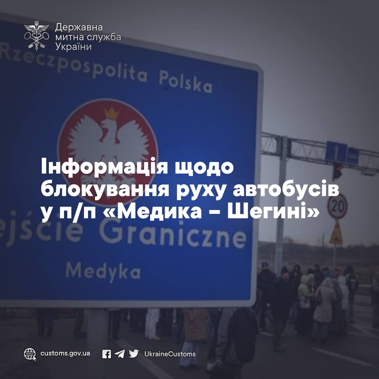❗️За інформацією польської сторони, сьогодні вдень розпочалося обмеження руху автобусів на виїзд з України та вʼїзд в Україну на підʼїзних шляхах до пункту пропуску «Медика-Шегині».