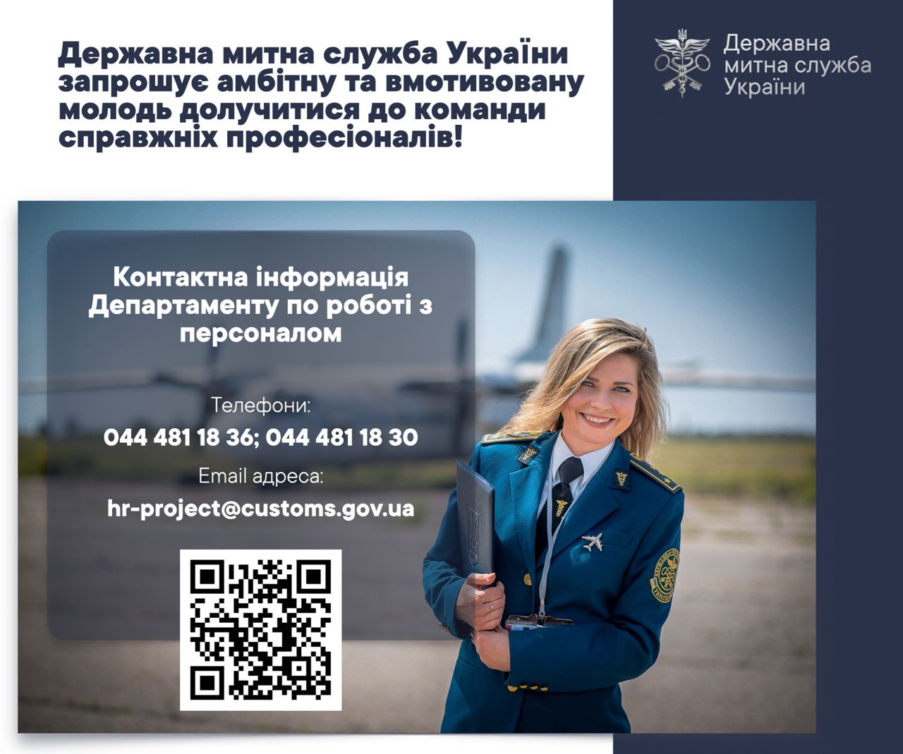 🛃 Державна митна служба України запрошує амбітну та вмотивовану молодь долучитися до команди справжніх професіоналів