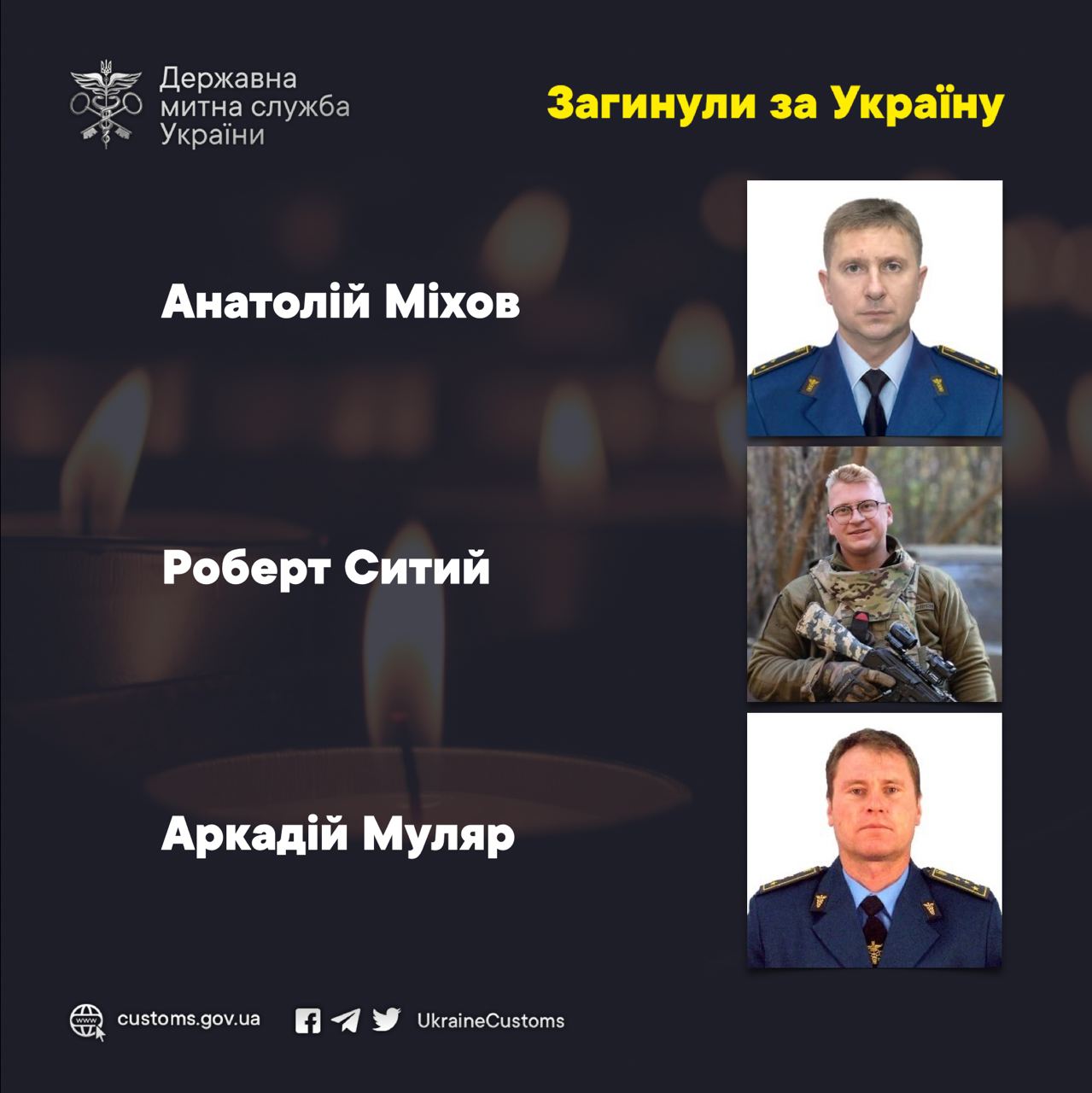 Колектив Державної митної служби України висловлює щирі співчуття рідним і близьким загиблих.
